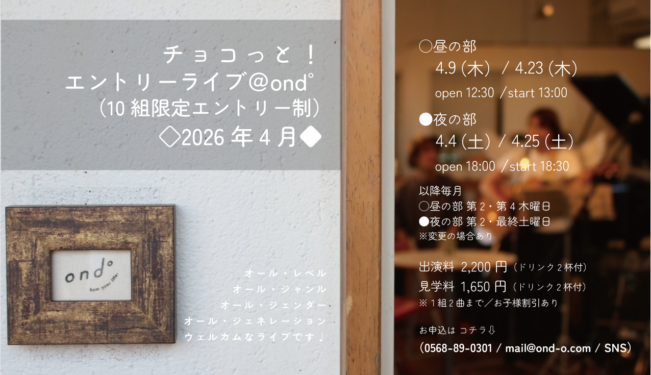 お申込・お問合せ:0568-89-0301 / mail@ond-o.com / 各SNS等
